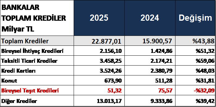 2025 yılında uygulanan dezenflasyon programı kapsamında, iç talepte daralmanın sağlanmasına yönelik finansal sıkılaştırma politikaları etkileri altında seyreden kredi piyasalarında birbirine tezat görünümler ortaya çıktı.