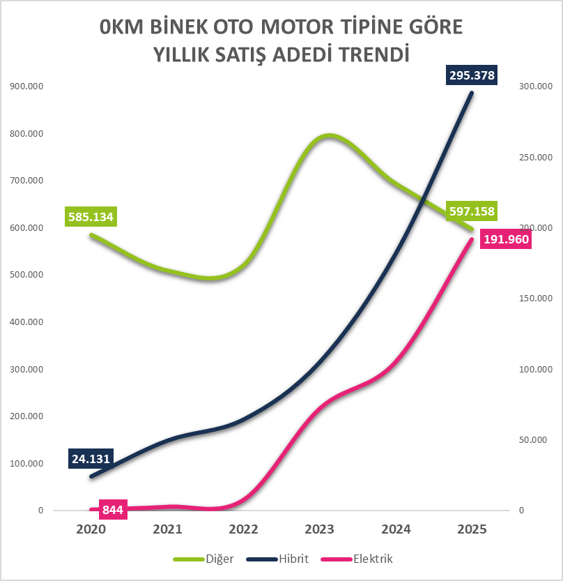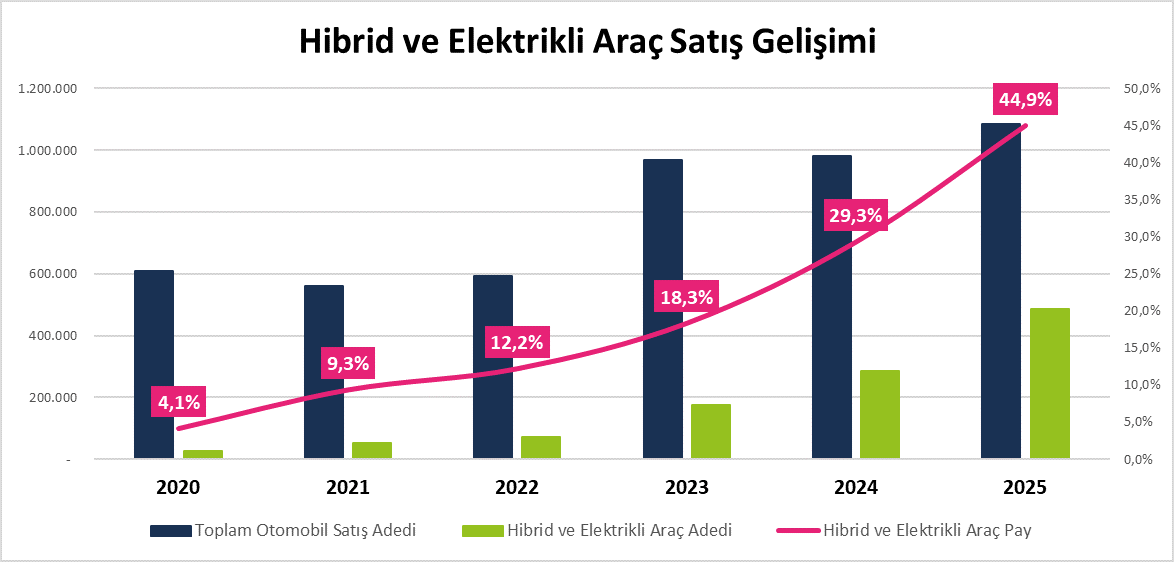- Elektrikli otomobil satışlarının %82,3, hibrit satışlarının ise %62,7 artması, motor tipine göre önemli bir dönüşümün göstergesidir.