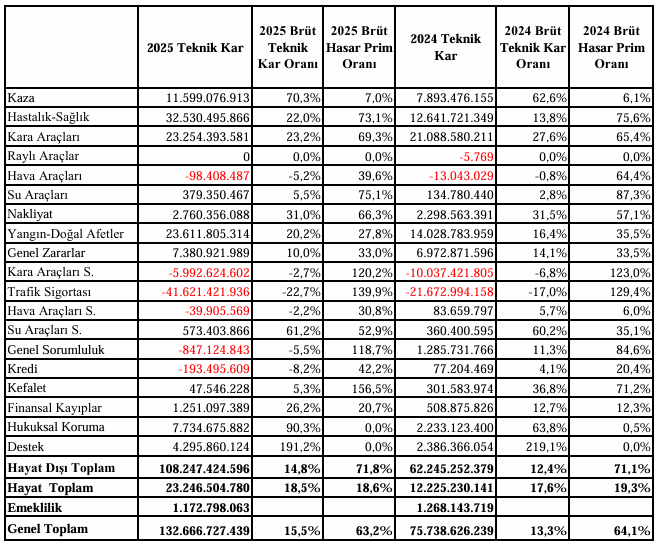 Bu yılın Ocak-Eylül döneminde hayat dışı branşlarda 108.2 milyar TL teknik kar elde ederek, geçen yılın aynı dönemine göre karlılık yüzde 73 arttı. Hayat sigortalarında ise 23.2 milyar TL kar elde edildi ve geçen yılın aynı dönemine göre karlılık 90 arttı.