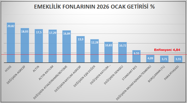 2026’nın Ocak ayında emeklilik fonlarında en yüksek getiriyi Hisse Fonları sağladı. Böylece, emeklilik fonlarında getiri ibresi yılın ilk ayında altından hisseye döndü. BES’in, 2026 Ocak ayı performansı belli oldu.