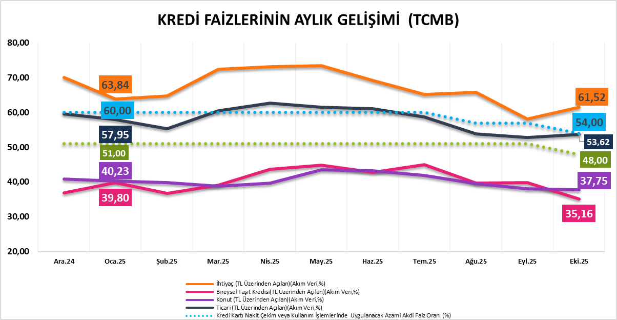 - Konut kredileri de, %25.61 büyüme ile 10 aylık enflasyonun altında gelişim gösterdi.