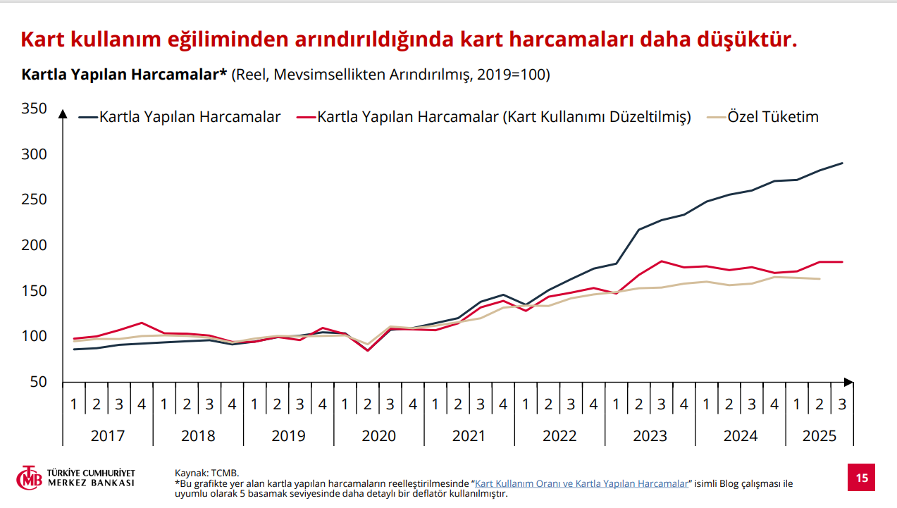 - Kartla yapılan harcamalar ivmelenerek özel tüketimin seyrinden ayrıştığı,