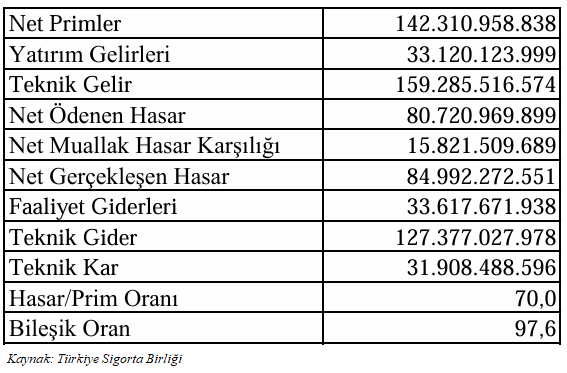 - Şirketler geçen yıl 80.7 milyar TL hasar ödemesi gerçekleştirmiş. Muallak hasar karşılığı ve IBNR (şirketlerin ayırdıkları teknik karşılık) dahil edildiğinde gerçekleşen net hasar tutarı 84.9 milyar TL olmuş.