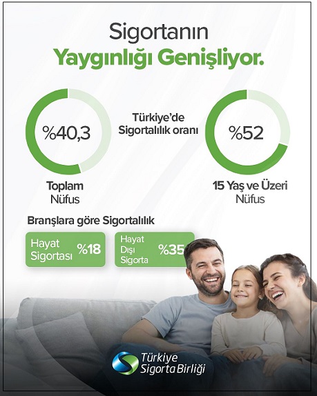 15 yaş ve üzeri nüfusta bu oran yüzde 52 seviyesine ulaştı. Branş bazında değerlendirildiğinde ise, toplam nüfus içinde hayat dışı sigortalılık yüzde 35, hayat sigortalılığı yüzde 18 düzeyinde izleniyor” denildi.