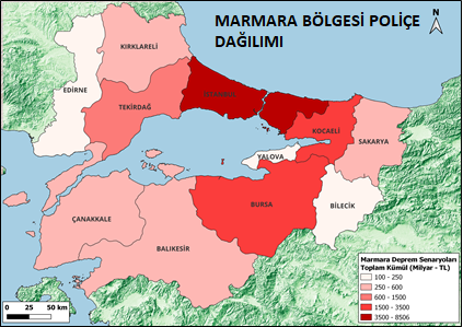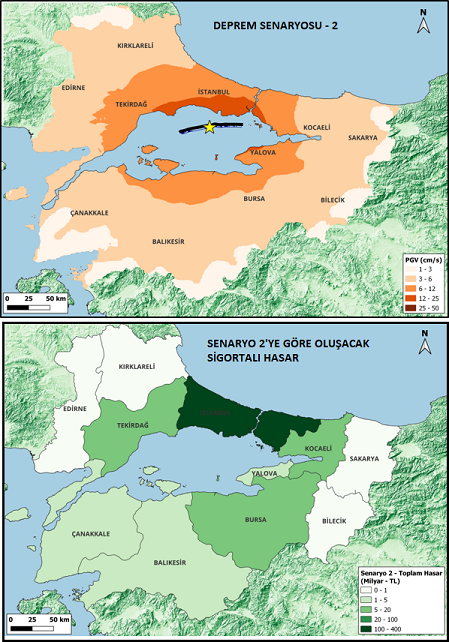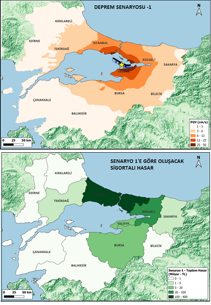 Modelleme ile Marmara Denizi için 4 olası deprem senaryosu geliştirdiklerini ifade eden Akkan, sigorta şirketlerinin 11 ili kapsayan Marmara bölgesindeki kümüllerini, toplam sigorta bedellerini dikkate alarak şirketlere olası hasar raporlaması yaptıklarını kaydetti. Deprem senaryolarını 7.1 ila 7.6 arasında değişen büyüklükteki depremlere göre gerçekleştirdiklerini vurgulayan Akkan, şunları söyledi: